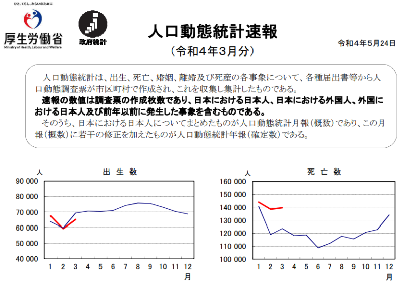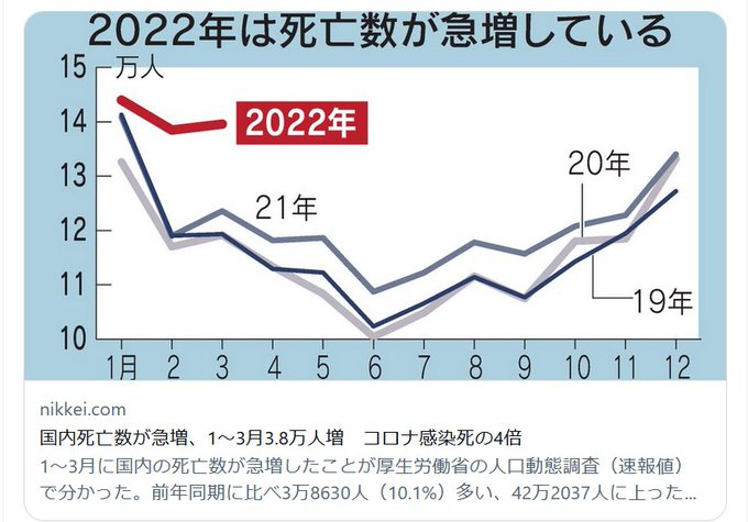 最近日本経済新聞から2022年1~3月の死亡者数が大きく増大していると報道された。新型コロナ感染症による死亡者よりも遥かに多く、原因は不明とされている。今回は日本国内の2022年に入ってからの死亡者数を調査してみた。
