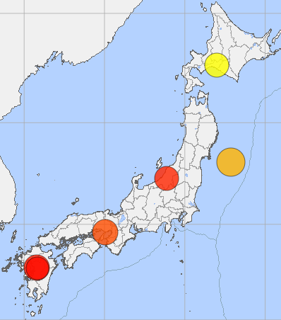一旦南海トラフ地震が起こると、震度7レベルの大地震の可能性があるとされている。気象庁には過去の地震状況のデータベースがあり、下の図はそれを用いて震度7以上、1919年以降で検索した結果となる。6ヶ所(熊本は2つが重なっている)が記録されているが、実はすべて1995年以降のものとなっている。過去約100年で発生した震度7以上の地震は全てここ30年に起こっているということで、不気味なデータではある。前述したように近年は死者が多量に発生する災害は減ってはいるものの、地震規模は何故か大きくなっている。
